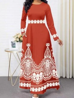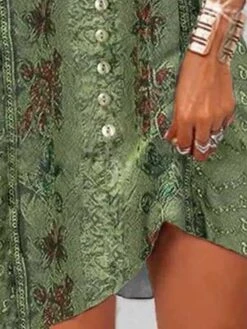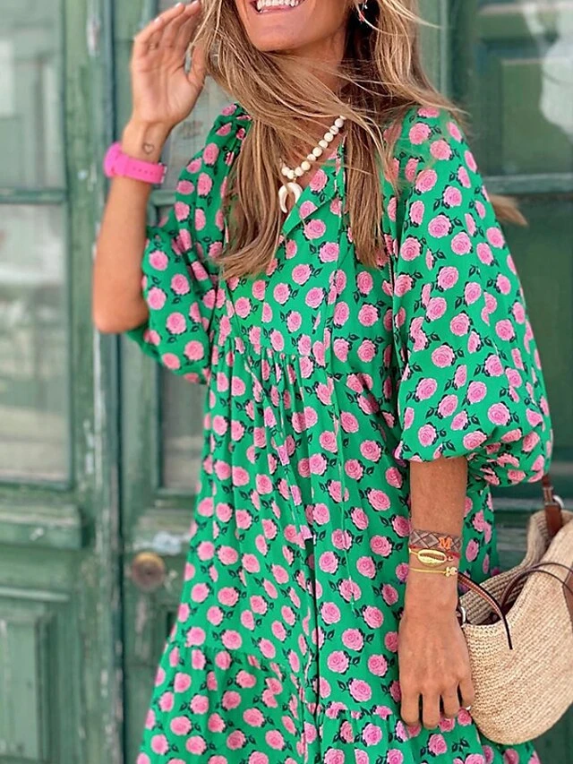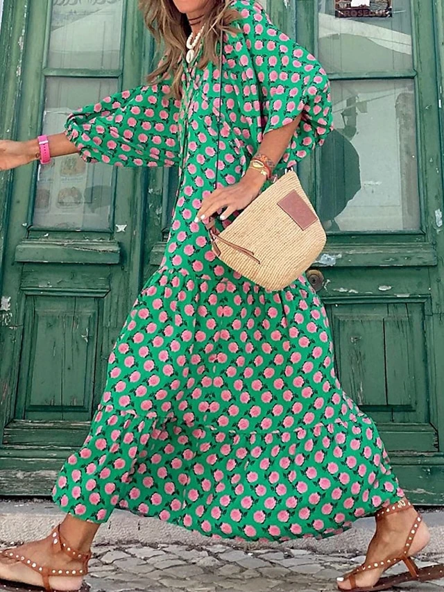 Women’s Bohemia Casual Dress Swing Dress Floral Dress Long Dress Maxi Dress Green Long Sleeve Floral Print Winter Fall Autumn V Neck Winter Dress Fall Dress Loose Fit 2023 S M L XL XXL