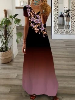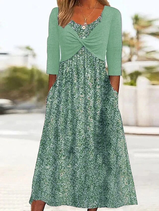 Women’s Casual Dress A Line Dress Floral Dress Floral Button Pocket Crew Neck Midi Dress Fashion Streetwear Outdoor Daily 3/4 Length Sleeve Regular Fit Green Summer Spring S M L XL XXL