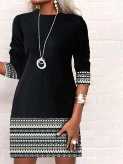 Women‘s Casual Dress Shift Dress Short Mini Dress White Black Gray Wine Long Sleeve Polka Dot Color Block Geometric Print Fall Winter Crew Neck Casual Modern 2023 S M L XL XXL 3XL