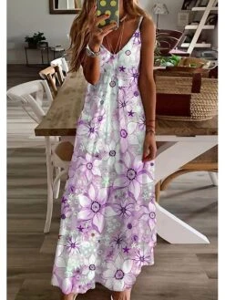 Women’s Casual Dress Swing Dress Long Dress Maxi Dress Purple Pink Yellow Sleeveless Floral Print Spring Summer V Neck S M L XL XXL