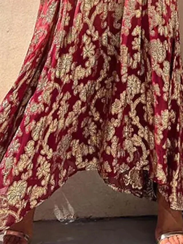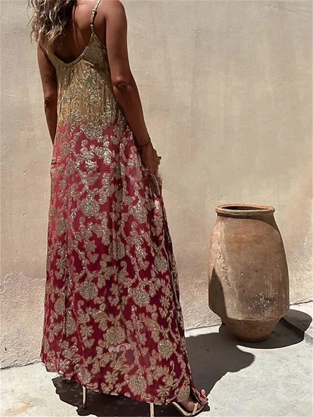 Women’s Long Dress Maxi Dress Casual Dress Swing Dress Summer Dress Floral Fashion Modern Outdoor Daily Vacation Print Sleeveless Strap Dress Regular Fit Wine Summer Spring S M L XL XXL
