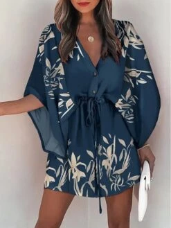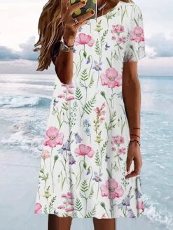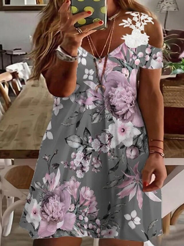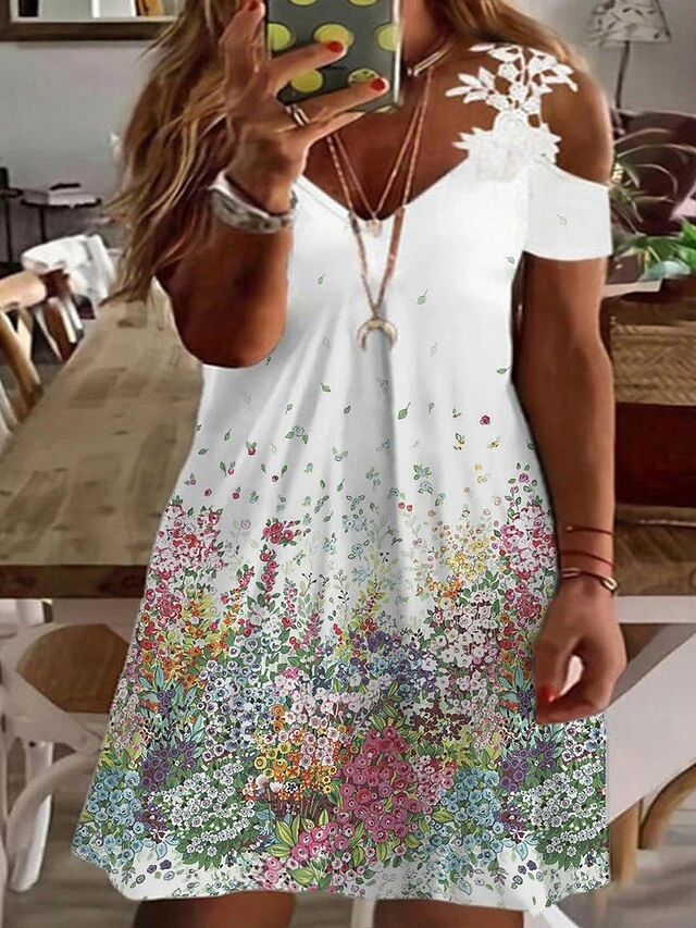Women‘s Plus Size Curve Casual Dress Lace Dress Floral Gradient Midi Dress Short Sleeve Lace Patchwork Strap Fashion Outdoor White Blue Summer Spring L XL XXL 3XL 4XL
